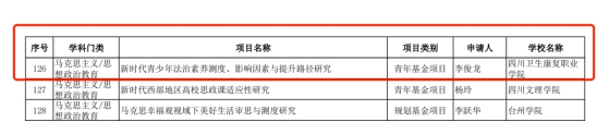教育部人文社会科学研究项目是仅次于国家社会科学基金项目的人文社科类高层次项目。据统计,2023年全国共立项人文社会科学研究规划基金、青年基金、自筹经费项目3029项,其中四川省职业院校获批3项,分别是四川卫生康复职业学院(青年基金项目)、四川城市职业学院(规划基金项目)、四川工程职业技术学院(青年基金项目)。