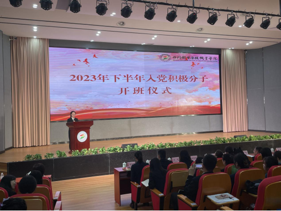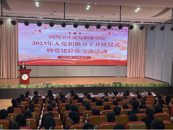 10月25日下午,四川卫生康复职业学院2023年入党积极分子培训班开班仪式暨党建拉练交流活动在3-C209报告厅举行。自贡职业技术学院党委书记朱成勇一行莅临交流,学校党委副书记、工会主席李华,党委委员、副校长申奎,党委委员、纪委书记李雁梅及相关处室负责人,各党支部书记、支部委员,二级学院党政办主任,党支部入党积极分子培训班学员及师生党员代表300余人参加。