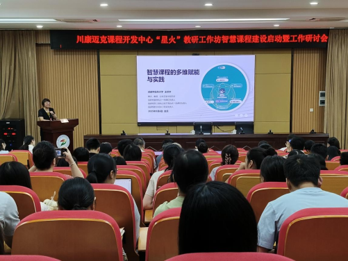 2025年9月6日,四川卫生康复职业学院川康迈克课程开发中心“星火”教研工作坊“智慧课程建设启动暨工作研讨会”在1B-403教室成功举办。上午由成都中医药大学公共卫生学院院长王世宇进行专题培训讲座,下午进行专题研讨。副校长李琴,教务处负责人、各二级学院教学院长、科长及智慧课程负责人与团队成员参加会议。