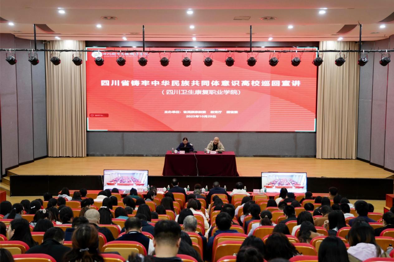 为进一步深入推进铸牢中华民族共同体意识教育走深走实,按照省民族宗教委、教育厅、团省委统一安排,10月29日,“四川省铸牢中华民族共同体意识高校巡回宣讲活动”在学校成功举行。本次宣讲特邀四川省铸牢中华民族共同体意识高校巡回讲堂三年行动宣讲团成员、四川省民族研究所支部书记、所长、研究员耿静主讲。活动由学校党委副书记文铭生主持,全体校领导及教职工共计300余人参加。