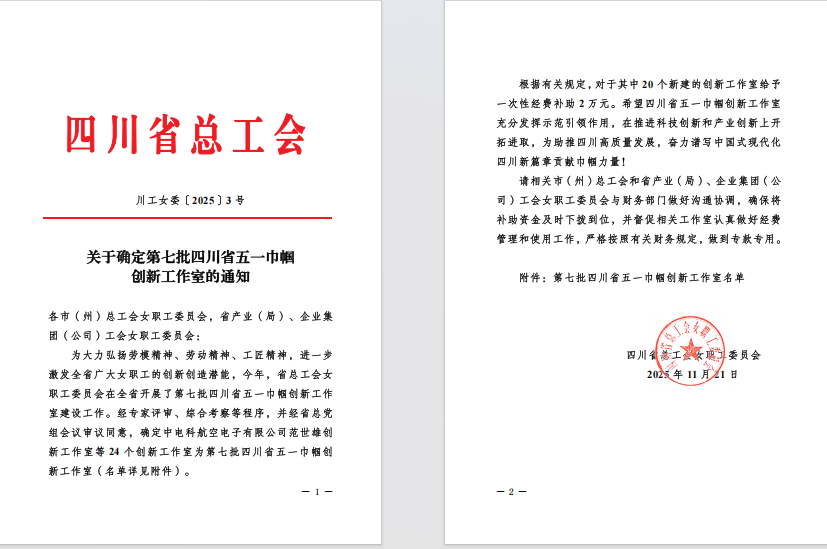近日,四川省总工会第七批“四川省五一巾帼创新工作室”名单正式揭晓,我校“邹金梅创新工作室”经过激烈角逐,成功入选,跻身全省20个新建创新工作室之列。