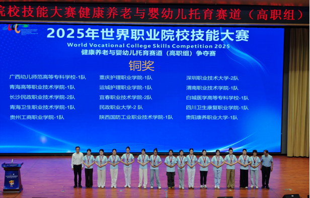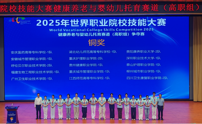 2025年9月2日,备受瞩目的2025世界职业院校技能大赛健康养老与婴幼儿托育竞赛在云南交通运输职业学院落下帷幕。这场聚焦健康服务领域的重大赛事,吸引了全国34个地区的155支队伍同台竞技,其中全方位考验团队综合能力的健康养老相关赛项更是成为比拼焦点。由我校选派的两支参赛队伍面对激烈的竞争,凭借过硬的专业功底、娴熟的实操技能与稳定的临场发挥,成功斩获两枚铜奖,为学校赢得了荣誉,也展现了我校在健康养老职业教育领域的专业水平。