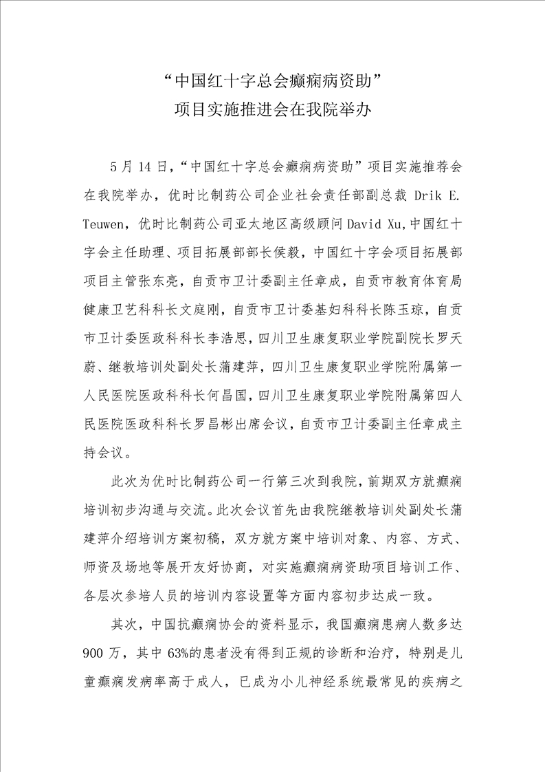 “中国红十字总会癫痫病资助”项目实施推进会在我院举办