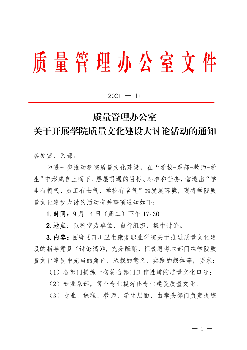 2021-11 关于开展学院质量文化建设大讨论活动的通知