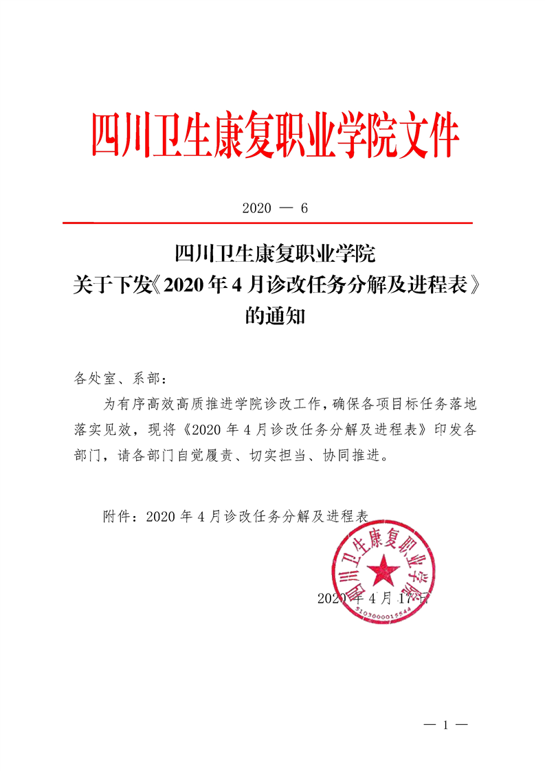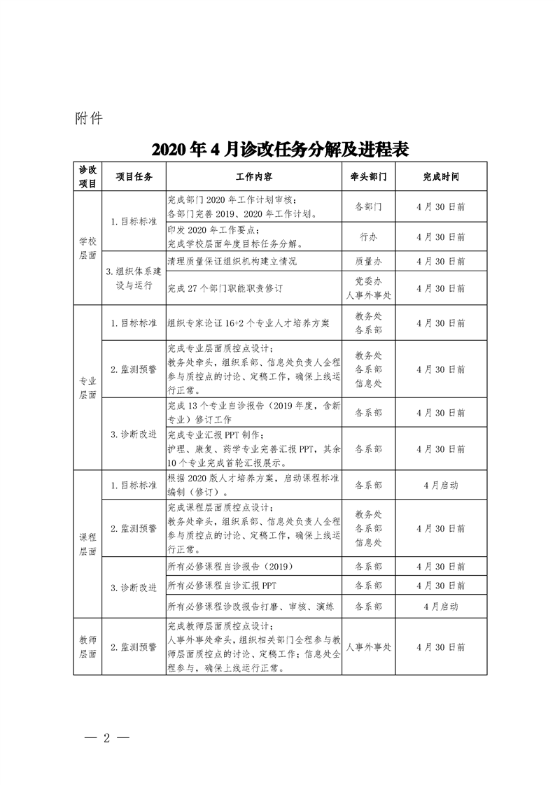 2020-6 关于下发《2020年4月诊改任务分解及进程表》的通知