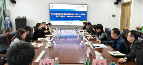 3月5日,学校与附属自贡市第一人民医院召开深化产教融合、医教协同工作洽谈会。学校党委委员、副校长李琴,附属自贡市第一人民医院党委委员、副院长唐娟,副院长石强出席会议。学校对外合作与产教融合处、继续教育学院、护理学院、康复学院,附属自贡市第一人民医院护理部、科教科负责人参加会议。会议由学校对外合作与产教融合处处长唐胜云主持。