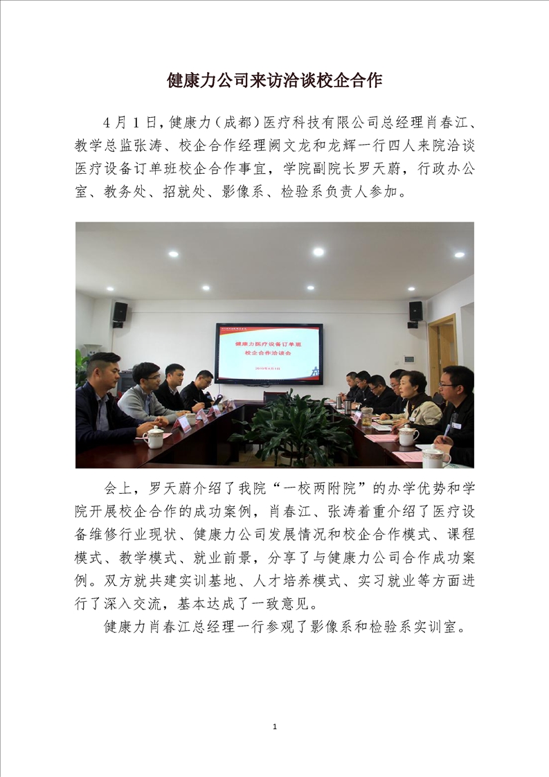 健康力公司来访洽谈校企合作