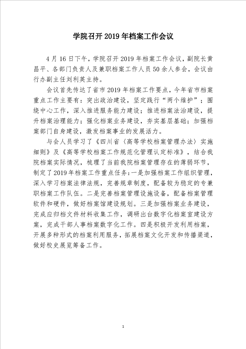 学院召开2019年档案工作会议