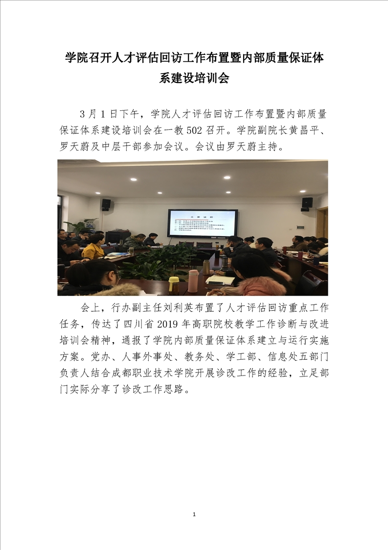 学院召开人才评估回访工作布置暨内部质量保证体系建设培训会