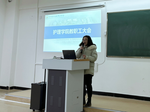 新学期伊始,为确保开学各项工作有条不紊地进行,2月23日下午,护理学院教职工大会在3教A221顺利召开。会议由护理学院副院长兰瑚主持,学校党委副书记李华、宣统部副部长赵天成及护理学院全体教职工参加会议。