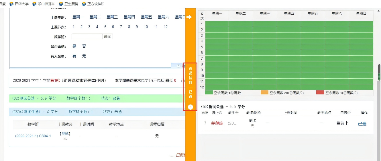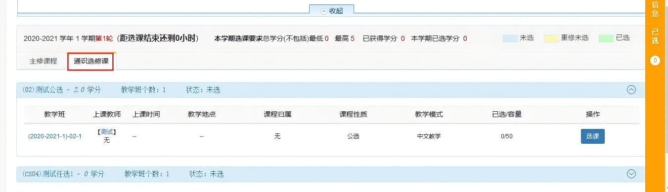 4、选课时只能选择课程容量未满的课程。如某门课程容量已满,则只能改选其他课程。