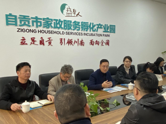 3月1日下午,我院副院长章荣及相关部门负责人一行6人前往自贡市家政服务孵化产业园就校企合作事宜进行了洽谈。