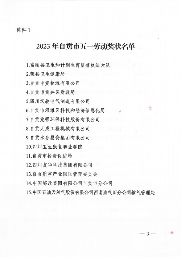 为激励全市广大职工在“拼经济、搞建设、促发展”建功立业,经市总工会研究决定,授予学校“2023年自贡市五一劳动奖状”称号。今年授予“2023年自贡市五一劳动奖状”称号的单位共15个。