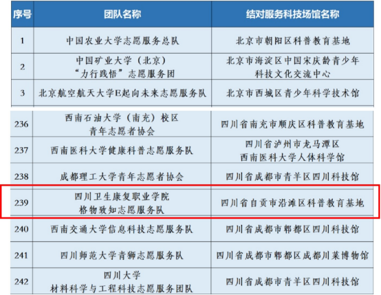 据中国青年志愿者官网最新公示,依托我校药品食品学院“四川省中医药文化科普实践基地”科普服务团队组建的“格物致知”志愿服务队成功入选2022全国大学生科技志愿服务示范团队。