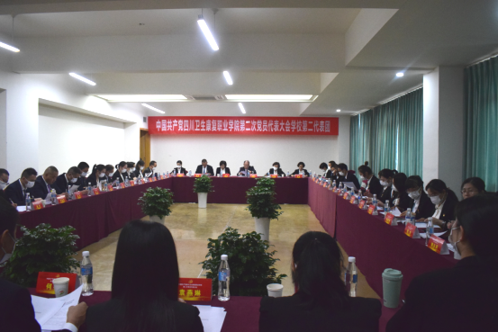 2022年10月12日下午3点50分,中国共产党四川卫生康复职业学院第二次党员代表大会各代表团召开第三次分团会议。