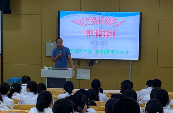 为进一步提升学生技能操作水平,增强学生的职场核心竞争力,提升学校教育教学内涵质量,助力学校“双高”建设,基础医学院于5月25日精心主办了四川卫生康复职业学院第一届“中博杯”解剖技能竞赛,竞赛在4-D103阶梯教室隆重开幕,基础医学院院长李胜在开幕式上致辞,并向参赛选手提出要求,发挥所学、赛出水平、赛出风采。
