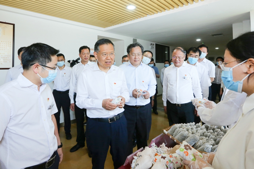 在药品食品学院,李建勤书记听取了校内实践育人基地——中医药文化馆建设及学生创新创业情况介绍,与学生亲切交谈,勉励他们发挥专业特长,传承弘扬中医药传统文化。