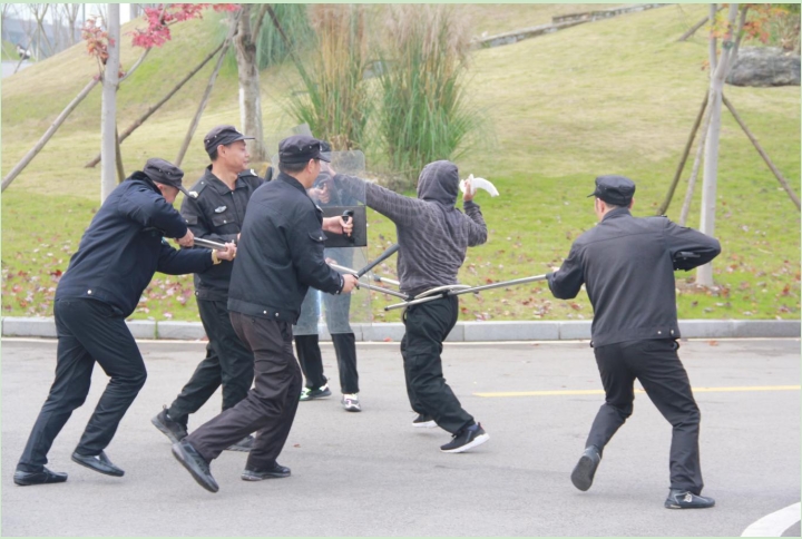 为普及突发事件应急预案知识,提升全体物业人员的应急处突能力,筑牢平安校园防线。在“11.9”全国消防日即将来临之际,11月5日下午,学校与汇东物业联合举行应急处突专项演练。副院长黄昌平、武装保卫处及汇东物业相关人员参加。本次演练由反恐防暴、消防应急、防汛抗洪三个科目组成。反恐防暴演练模拟了“恐怖分子”手持刀具在校园“行凶”被成功制服。