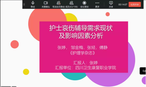 为提高中高职院校专兼职教师和各医疗卫生单位护理工作人员的科研论文撰写能力。11月10日,由自贡市护理学会、护理教育专委会主办,四川卫生康复职业学院承办的优秀论文交流分享活动在线上举办。