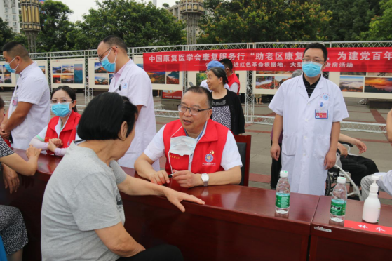 为庆祝中国共产党成立100周年,深入贯彻党的十九大精神和全国卫生与健康大会精神,精准对接人民群众多样化健康需求,助力健康中国建设。由中国康复医学会主办,四川卫生康复职业学院承办的康复服务行活动计划之“助老区康复发展,庆祝建党一百周年”走进红色革命根据地巴中,大型学术义诊活动于7月3日至4日在巴中2区3县同步进行,学院副院长章荣参加活动。