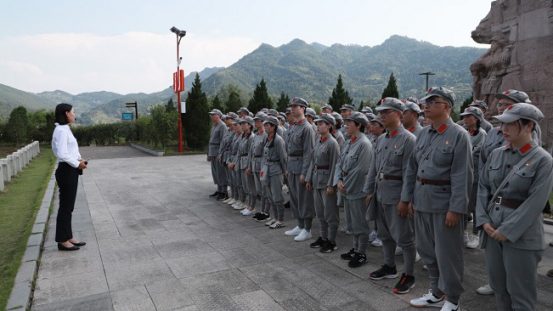 除专题讲座外,学员们还参与了红歌传唱、土城红色遗迹打卡、浮桥搭建实践,参观了青杠坡战役遗址、四渡赤水纪念馆、赤水河盐运文化纪念馆等实践教学场地,体验了穿红军装、吃红军餐。在青杠坡“党员政治生活馆”,讲解员配合图文带领大家生动回顾了党的百年光辉历程,详细讲解了入党誓词的四次变迁,李华带领全体党员面对鲜红党旗重温了入党誓词并为牺牲在青杠坡战役中的革命先烈敬献花篮。《铮铮誓言》《祖国,只要您需要》《“初”发—用信仰丈量新时代的长征路》《从四渡赤水精神看党的群众路线》一堂堂生动的主题情景党课将学员们的心绪一次次拉向那场腥风血雨而又豪情万丈的经典战役现场。