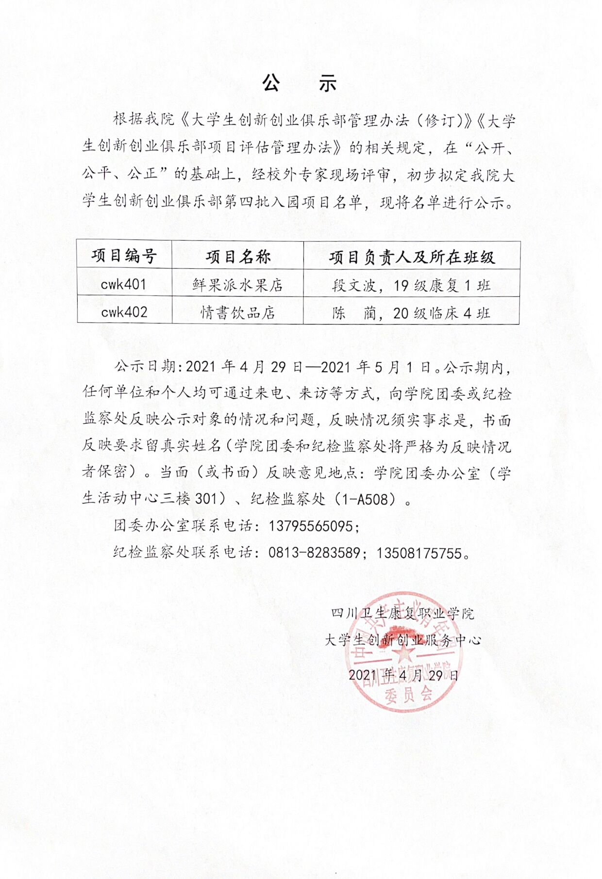 4月28日,我院第四批大学生创新创业项目招标评审会在学院1-B205举行。本次评审会邀请沿滩区就业局局长涂准,四川轻化工大学管理学院创新创业中心主任汪芳,自贡市职业培训学院SYB培训高级讲师张厚惊三位老师作为此次评审专家。会议由学院团委副书记王庆主持,11支学生创业团队以及100名学生代表参加。