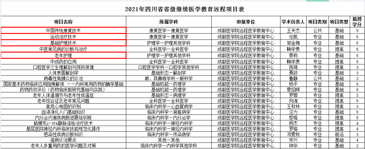 学院康复系《中国传统康复技术》《运动治疗技术》与护理系《基础护理技术》《老年护理》项目获批四川省远程继续医学教育项目,另副院长章荣的《社区康复》项目也成功获批,此五个项目也同时获批2021年成都医学院“校级在线开放课程项目”立项。