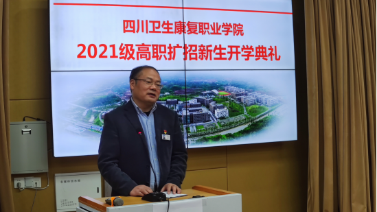 2021级高职扩招新生开学典礼在庄严的国歌声中拉开序幕。党委书记刘建辉热情洋溢的向来自全国各地的扩招新生表示热烈的欢迎和祝贺,并对2021级全体扩招新生提出了三点希望:一是明确目标,增强业务能力,提升服务基层医疗卫生能力,为健康中国贡献力量。二是要立德树品,端正心态,主动适应新的学习模式,做一个有理想、有抱负、有学识、有社会责任感的新时代大学生。三是要坚持问题导向,立志成才,练就过硬本领,树立自主学习、创新学习、终身学习的理念,学到真学问、练就真本领。
