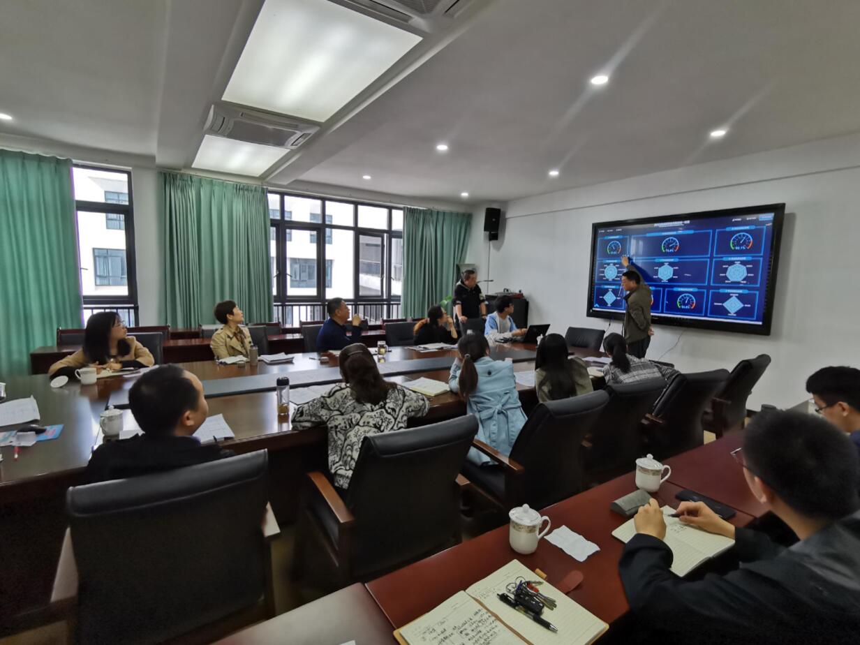 信息处处长曾旭东及诊改平台建设方金智公司汇报并展示了学院信息化服务平台及诊改系统建设情况。与会人员就平台建设质控点分布及展示细节等进行了充分讨论,并在下一步建设改进方向上达成一致。