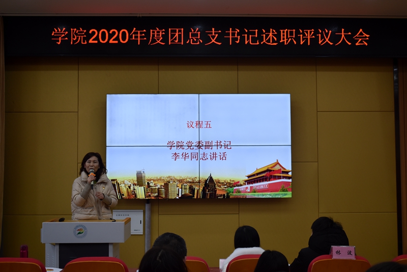 1月20号,学院团委在1-B403举行了2020年度团总支书记述职评议大会。学校党委副书记李华、党委办公室副主任王剑云、学工部副部长陈余梅、教工团支部书记、人事处副处长李俊龙、思政部党支部常务副书记秦丹、各系团总支书记、委员和青年师生代表参加会议。校团委副书记王庆主持会议。