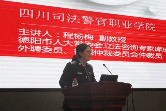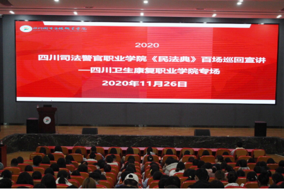 在《民法典》即将颁布实施之际,为提升全院师生法治思维水平,11月26日,学院邀请四川司法警官职业学院程杨梅副教授等到校在3教C209开展《民法典》宣讲活动,学院师生代表400余人参加。