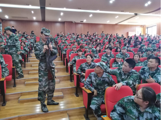 11月8日,沿滩区人武部向辉政委到我院作国防军事理论讲座。武装保卫处全体成员和2019级400名学生代表参加。