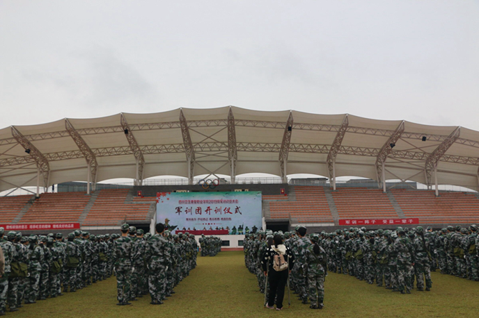 10月17日上午,我院在田径场举行2019级学生军训动员大会,因疫情姗姗来迟的二年级军训由此拉开序幕。学院副院长黄昌平,承训部队自贡市沿滩区人民武装部部长滕建军及全体教官,学院相关部门负责人,2019级专兼职辅导员、2019级全体同学参加大会。