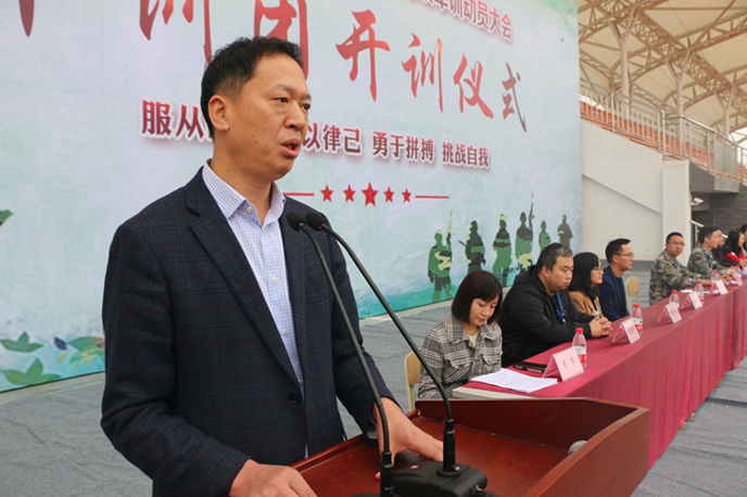 黄昌平代表学院全体师生向沿滩区人民武装部和各位教官表示热烈欢迎,向全体参训同学表示亲切问候,并就做好此次军训工作向全体参训师生提出希望和要求。