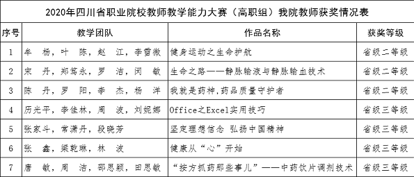 8月8日,由省教育厅主办的四川省高等职业院校教师教学能力大赛决赛在成都航空职业技术学院圆满落幕。我院参赛团队获得二等奖3项、三等奖4项的优异成绩。