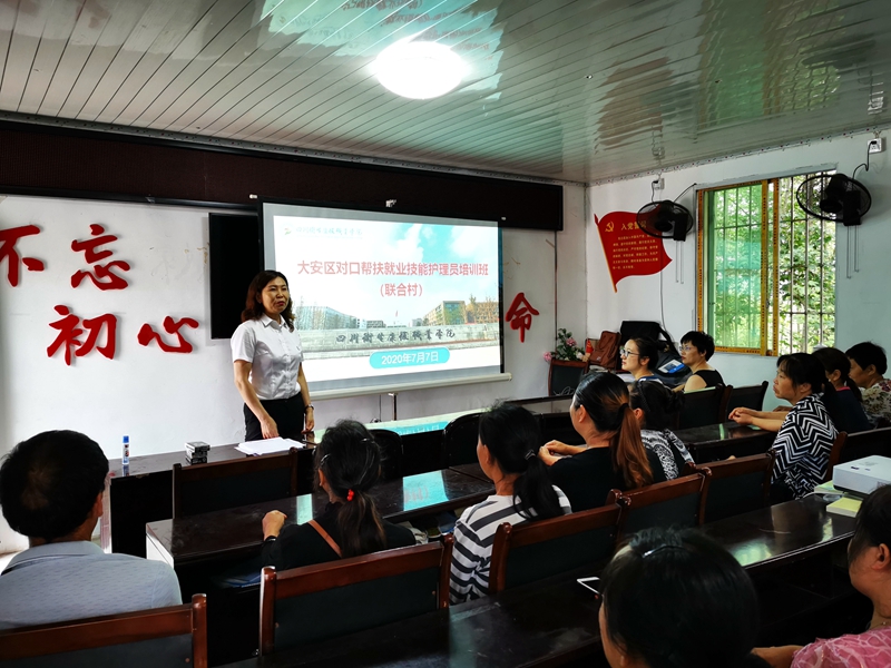 为切实提升联合村贫困户就业技能,促进现有剩余劳动力充分就业,7月7日,由大安区人社局组织,学院继教培训处和护理系承办的“2020年大安区对口帮扶就业技能护理员培训班”在联合村开班,34名贫困户将参与为期15天的集中培训。