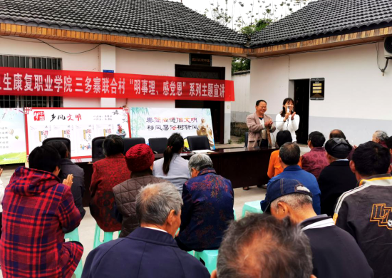 4月18日上午,学院与大安区三多寨联合村共同开展第一期“明事理 感党恩”专题感恩教育宣讲会。学院党委副书记、纪委书记李华带队,学院行政党支部党员志愿者、思政部与人文社科部专兼职教师,联合村两委成员、全体贫困户及留守儿童参与。本次宣讲活动由扶贫政策及现状宣讲、普通话推广教学、辅导留守儿童功课三部分组成。
