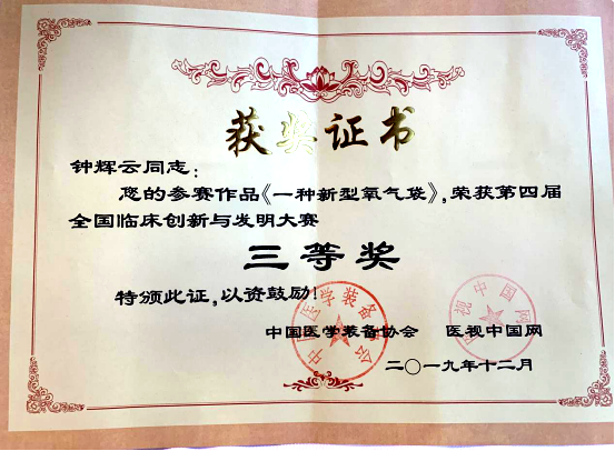 12月22日,在中国医药装备协会主办的“第四届全国临床创新与发明大赛”中,药学系副主任钟辉云的专利项目《一种新型氧气袋》从全国1000余项创新参赛项目中脱颖而出,荣获第四届全国临床创新与发明大赛三等奖。