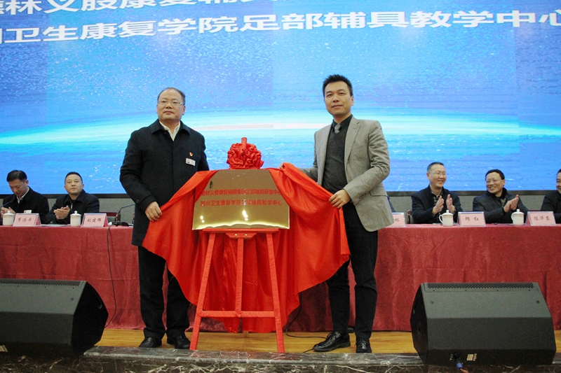 会议期间,四川卫生康复职业学院党委书记刘建辉与德林义肢康复器材(成都)有限公司董事陈建燐共同为学院与公司共建的足部辅具产学研项目揭牌。会议对2019年度校企合作优秀单位进行了颁奖,对新加入集团的6家理事单位进行了授牌仪式。