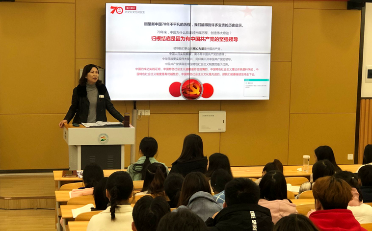 学院领导班子每学期为学生讲授形势与政策专题课,是我院的一种常态化机制,是深入贯彻习近平总书记在学校思想政治理论课教师座谈会上讲话以及2019年《关于深化新时代学校思想政治理论课改革创新的若干意见》等精神的具体举措,为推动我院全员思政、立德树人起好带头作用。