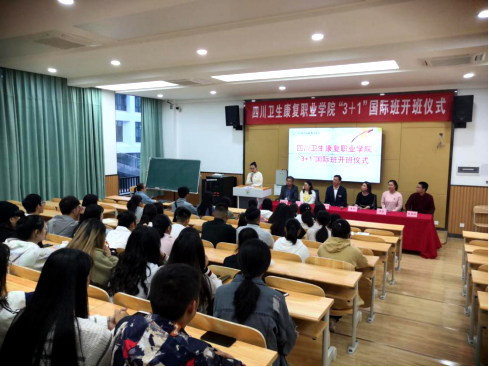 学院首届“3+1”国际班开班仪式于10月30日下午在四教D203举行。学院副院长黄昌平、行政办公室副主任李琴、康复系副主任谭惠、护理系副主任兰瑚、医学影像系副主任秦志刚、临床医学系副主任段河军、国际班班主任陈雯彦和国际班学员共58人参加。
