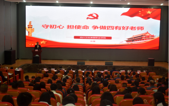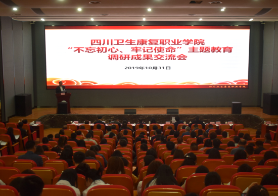 10月31日,学院召开主题教育专题党课暨调研成果交流会。党委书记刘建辉以《“不忘初心、牢记使命” 为百年新川康努力奋斗》为题,通过讲授与讲述相结合的方式,全景式再现了教育工作者倾情职教、医务工作者“医”往情深的执着和坚守。自贡市最美教师获得者(护理系教师)罗劲梅、四川省第二届大美医者(附属自贡市第四人民医院医生)曹灵红走上讲坛,自贡市第二届大美医者(附属自贡市第一人民医院医生)王蔚用视频,为300余名职工及学生代表讲述他们的从教从医历程,让在场学习人员备受感染和鼓舞,坚定了为百年新川康再续华章、再立新功的信心和决心。