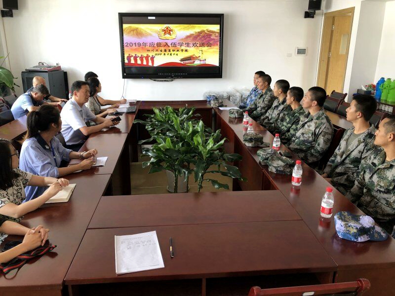 9月9日下午,我院应征入伍学生欢送会在1-A502会议室举行。副院长黄昌平,学工部、团委、保卫处、各系部相关责任人及应征入伍学生参加。