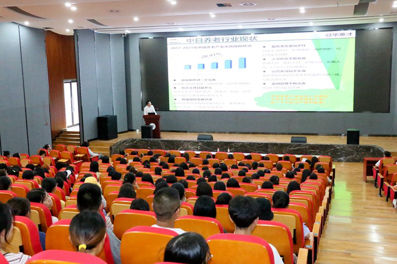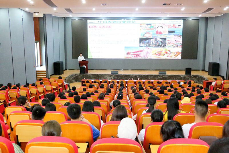 李威分别从中日养老行业现状、从业人员收入、工作时间、工作内容、劳动强度、社会保障等方面进行了介绍。他说:“日本养老行业起步早、发展快、行业规范、理念先进。希望学生先去养老先进国家学习,开拓视野,继而回国致力于中国养老行业快速发展提升!”