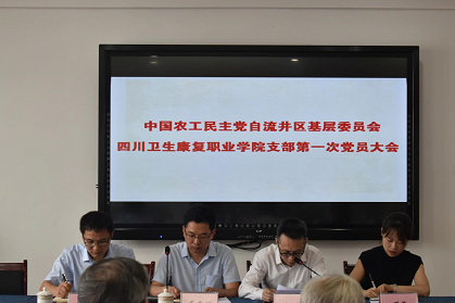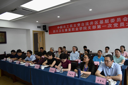 自贡市政协副主席、农工党市委主委徐武斌,学院党委副书记、纪委书记李华,自流井区委常委、统战部部长黄敏,自流井区政协副主席、农工党自流井区基层委主委刘桥,自流井区委统战部副部长、区台办主任袁芳,民革自贡市委委员、自流井区基层委副主委、民革四川卫生康复职业学院支部主委、附属自贡市第一人民医院眼科主任李爽乐,九三学社自流井区委二支社主委、学院临床医学系副主任蒲建萍,农工党自流井区基层委副主委邓治平,农工党自贡市委办公室主任张智敏,学院党委办副主任吴涛、赵天成及学院全体农工党员参加大会。