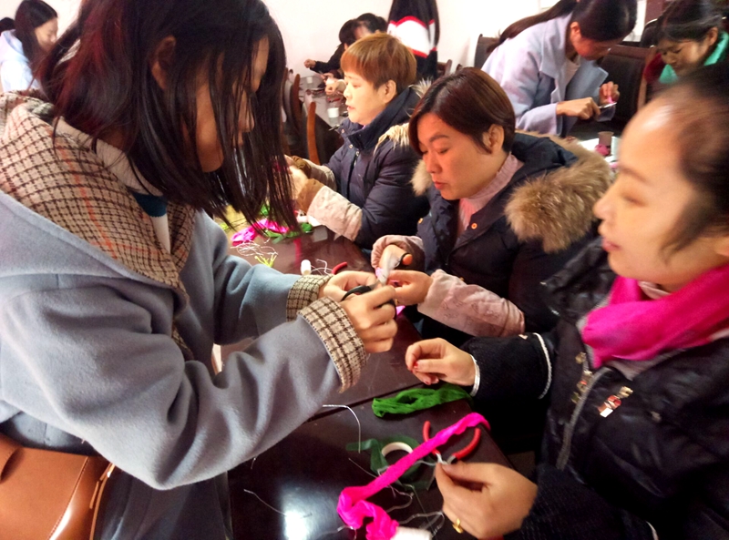 “线一定要缠紧,不然花瓣会掉”。在联合村农民夜校课堂上,学院手工社社长王双岐耐心指导前来学习手工制作的村民。为充分发挥高校服务社会职能及学生多才多艺的优势,12月2日,在学院党委办公室的组织安排和驻村干部赵天成的带领下,手工社4名同学一大早就来到大安区三多寨联合村,对前来听课的村民传授手工制作,帮助拓宽村民致富渠道。