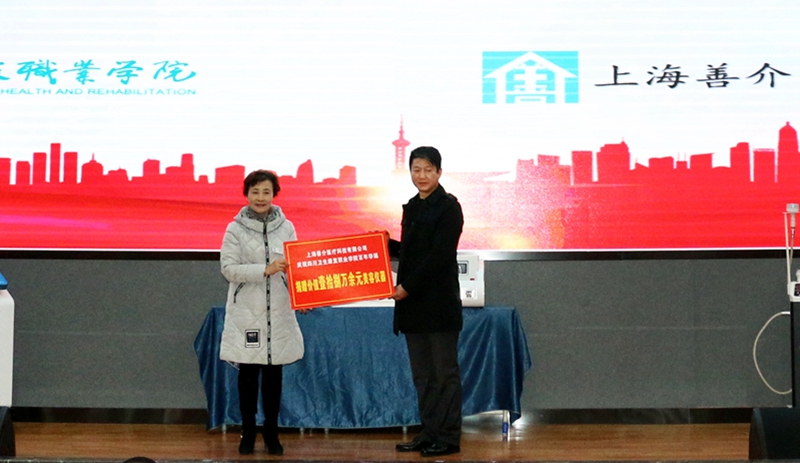11月29日下午,上海善介医疗科技有限公司庆祝学院百年华诞捐赠仪式在3号楼C209顺利举行。上海善介医疗科技有限公司总经理何新励、副总经理缪倩、新媒体运营部主管张杨、平面设计师晁妮,学院副院长罗天蔚、学院相关部门负责人及医美专业学生代表参加了此次活动。护理系主任邹金梅主持捐赠仪式。