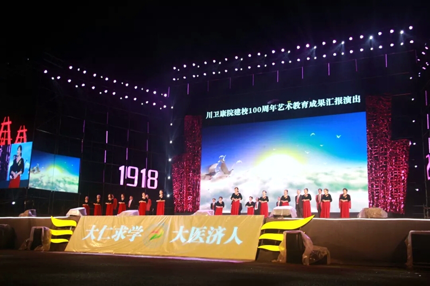 11月16日晚,以“大美川康,百年启新”为主题的四川卫生康复职业学院建校100周年校庆文艺晚会在室外运动场举行。