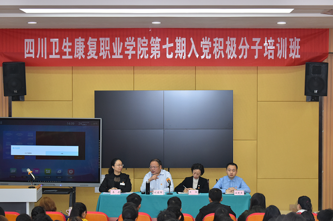 10月27日,四川卫生康复职业学院党校第七期入党积极分子培训班正式开班。学院党委书记、党校校长刘建辉出席,学院及附属一、四医院共计一百五十余名师生入党积极分子参加。开班仪式由党委办公室副主任吴涛主持。