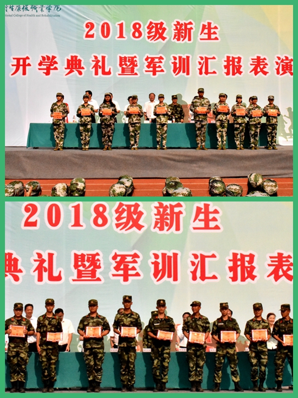 在奏唱《中华人民共和国国歌》后,开学典礼暨军训汇报正式开始。各班参训学生喊着嘹亮的口号、迈着整齐的步伐依次经过主席台,接受检阅。随后,参训学生进行了内务展示、军歌演唱、拳术方队、匕首操等汇报表演,展示了川卫康院的青春风采和军旅儿女的铮铮铁骨。2017级彭亮、2018级陈鑫、护理系教师郑国燕分别作为老新生代表、教师代表进行了发言。参会领导对120个优秀寝室,10个优秀班集体,10名优秀教官,50名优秀学员进行了颁奖。